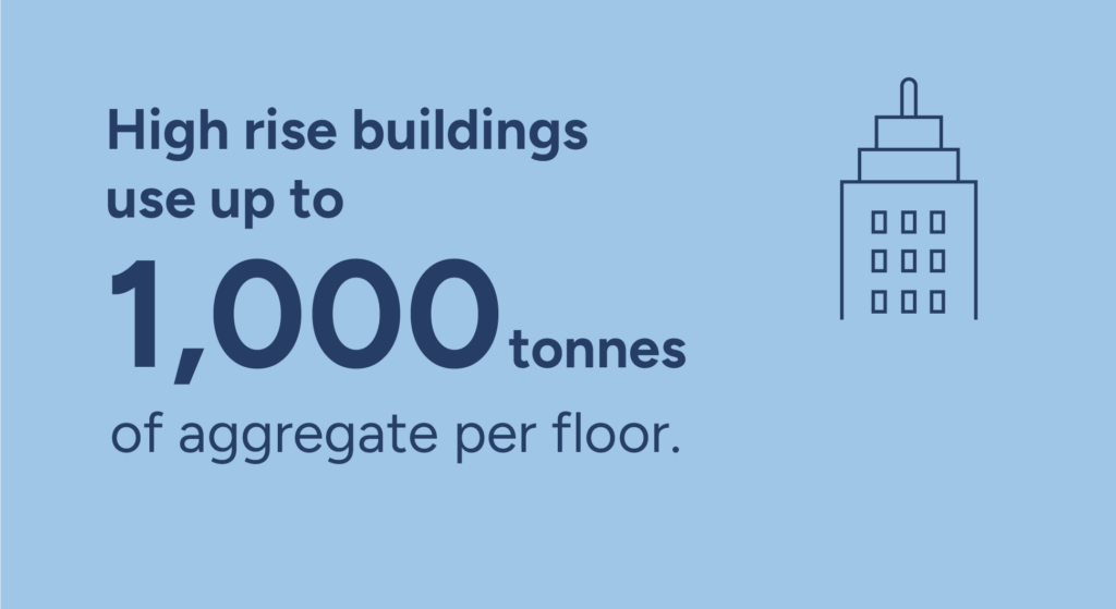 High-rise buildings can use up to 1,000 tonnes of aggregate per floor, highlighting the scale of materials needed for vertical construction.