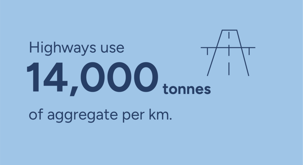 Constructing 1 kilometre of highway can require up to 14,000 tonnes of aggregate, underscoring the material demands of major transport projects.