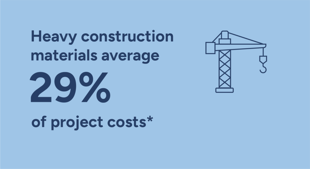 Heavy construction materials account for approximately 29% of total project costs, making them one of the most significant contributors to infrastructure budgets.